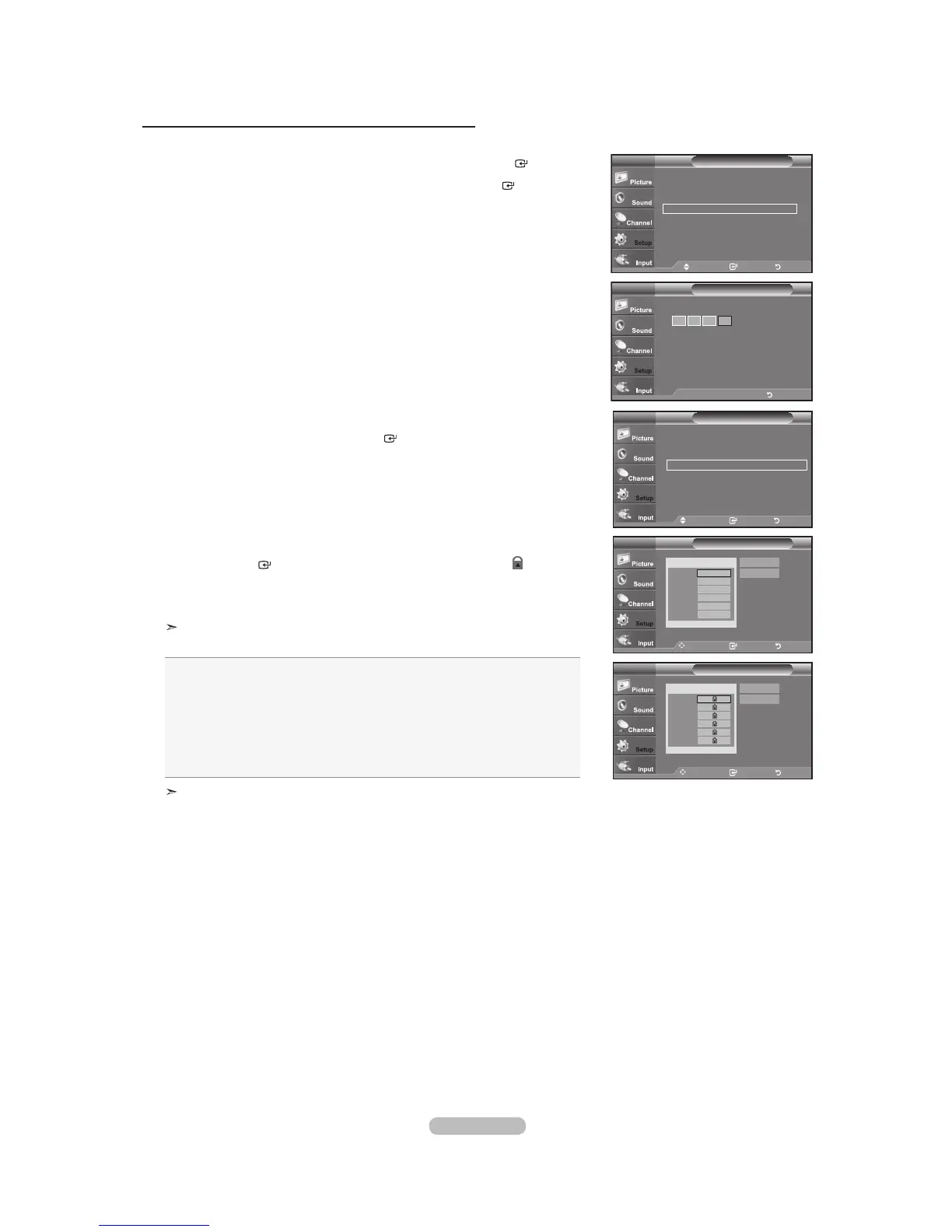 3. The “V-Chip” screen will appear. Press the
