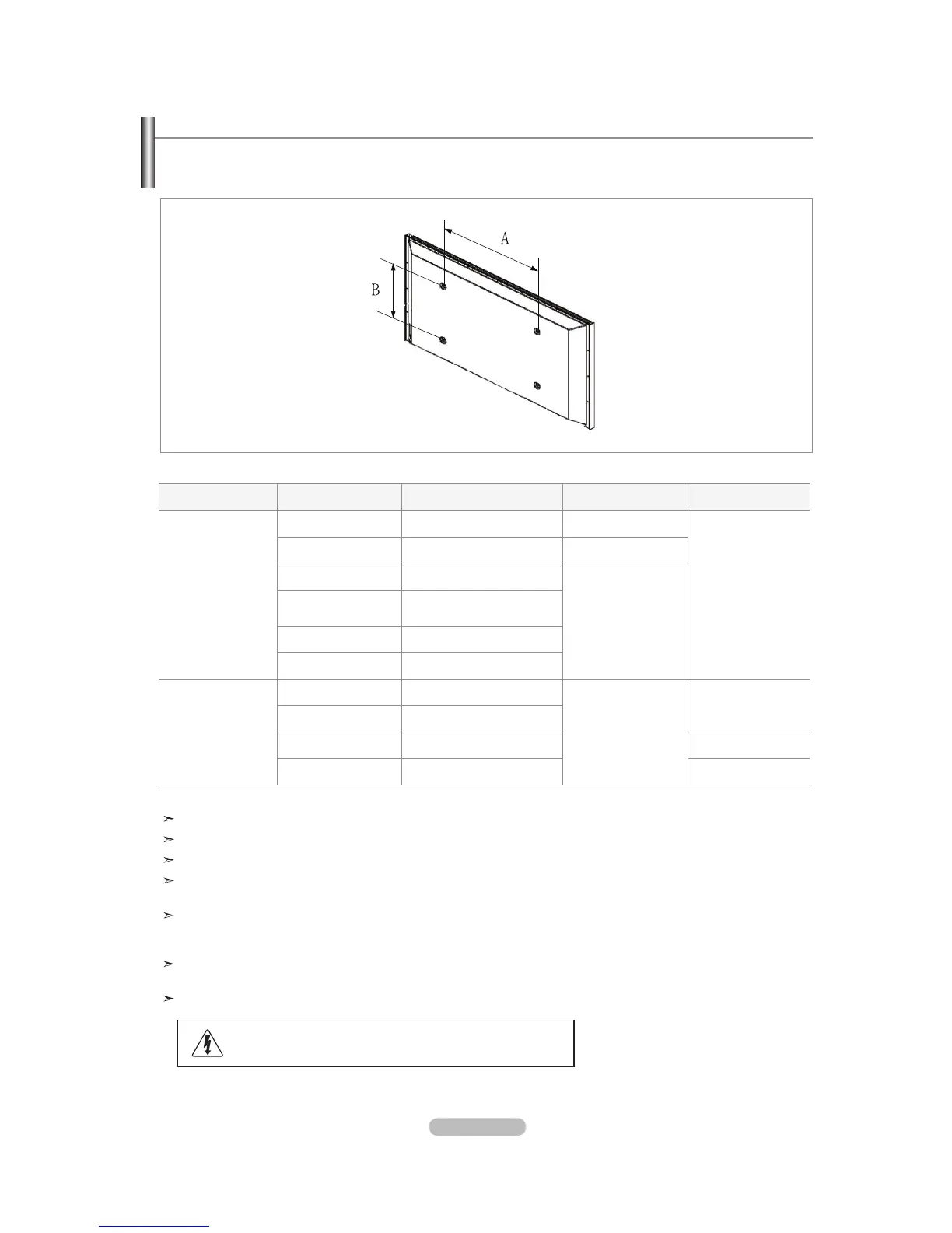 Do not use screws that do not comply with the VESA standard screw specifications.