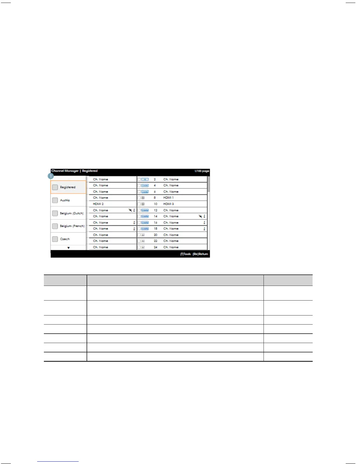 y * If the corresponding function is executed, a country for the selected channel can be set or canceled.