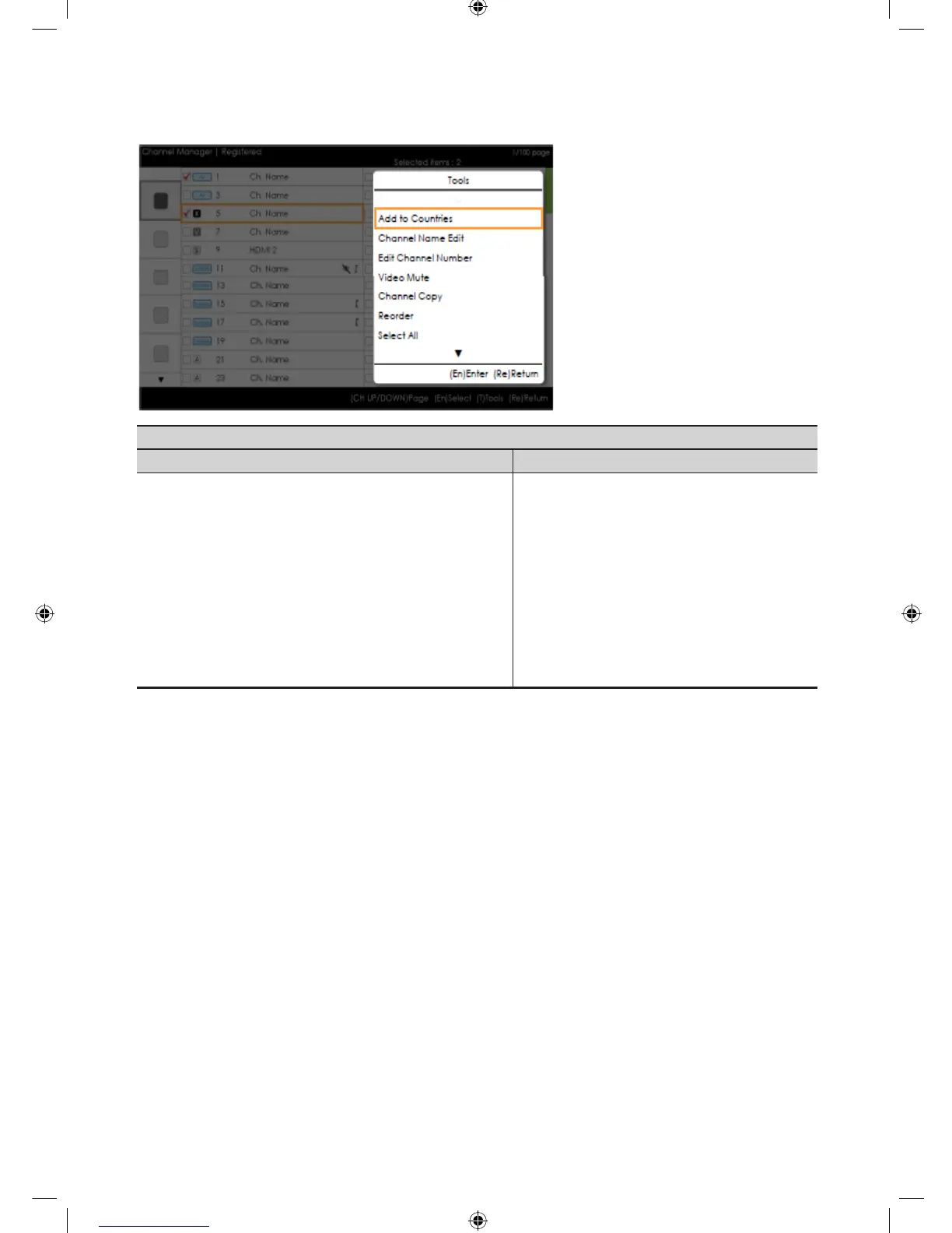 on the right. The Tools menu for an item in the right column of the Channel List → This is displayed on the left.