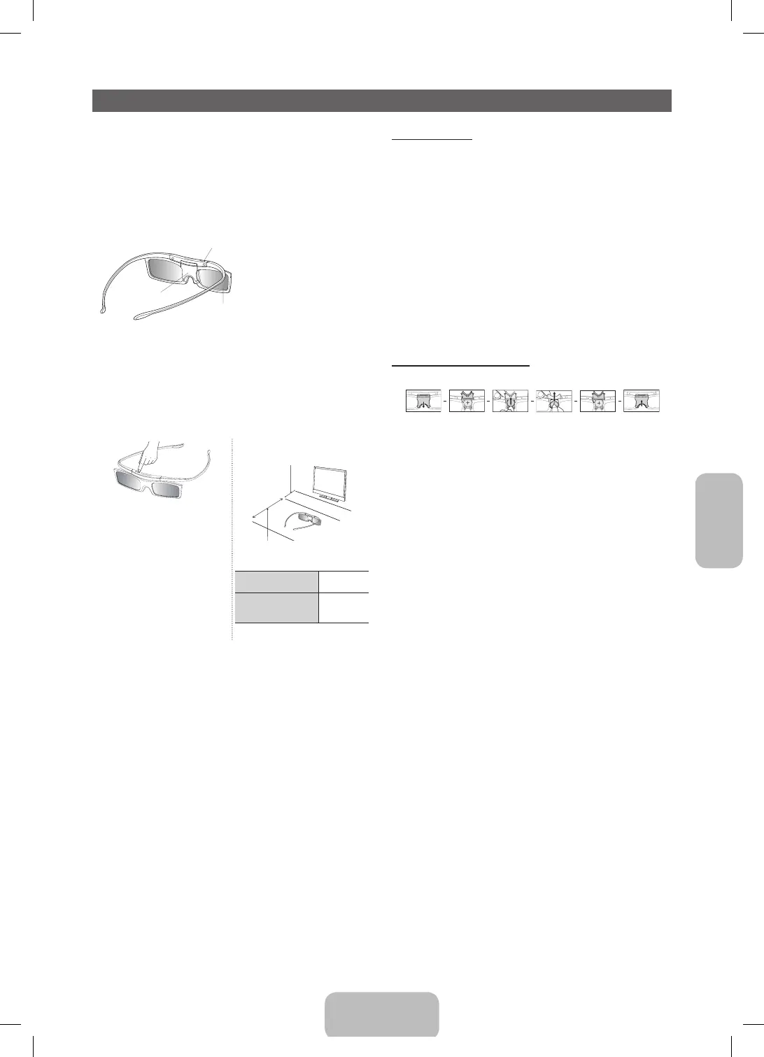 • Jei žiūrėdami televizorių su „3D Active“ akiniais gulėsite ant šono, vaizdas