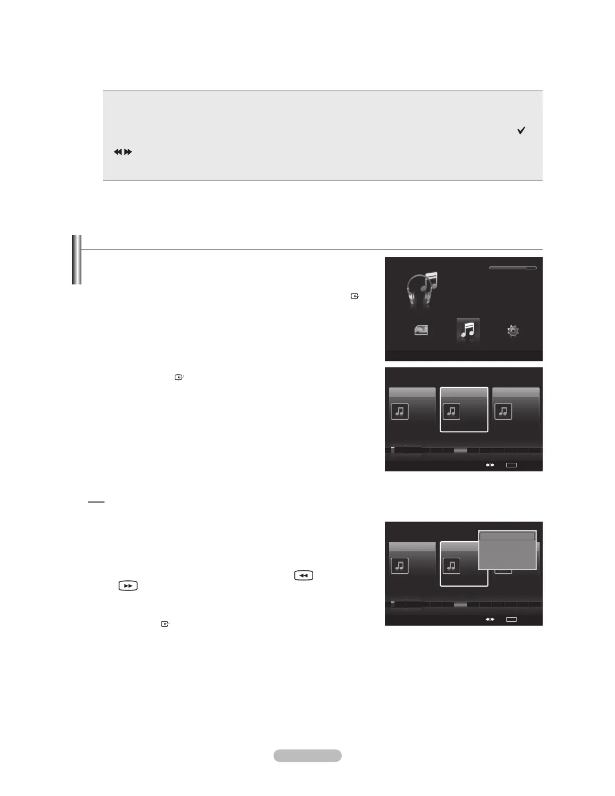 Yellow(Select) button: Selects music les from the music list. Selected music les are marked with a symbol