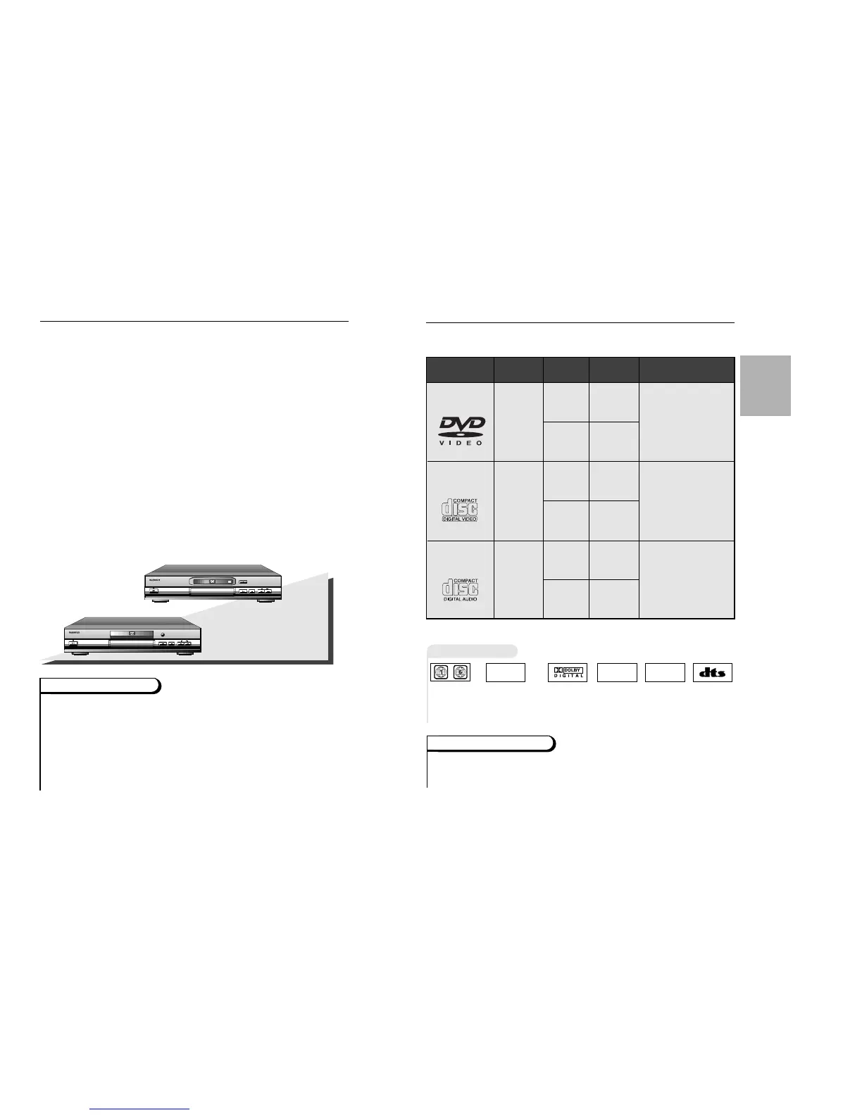This DVD player is capable of playing the following types of discs with the