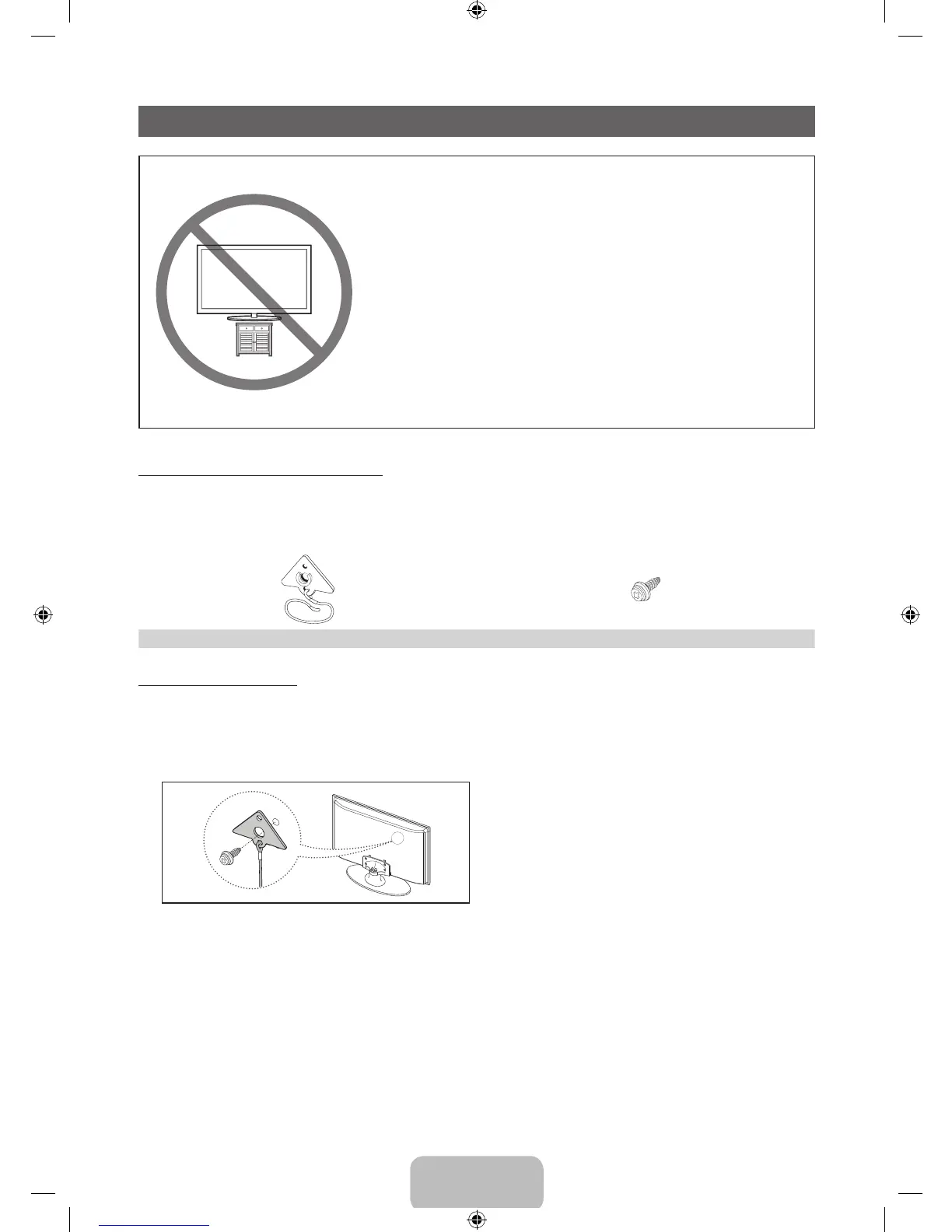 2. Firmly fasten the screw you provided (size M4xL20 or similar) to the wall or cabinet where the TV is to