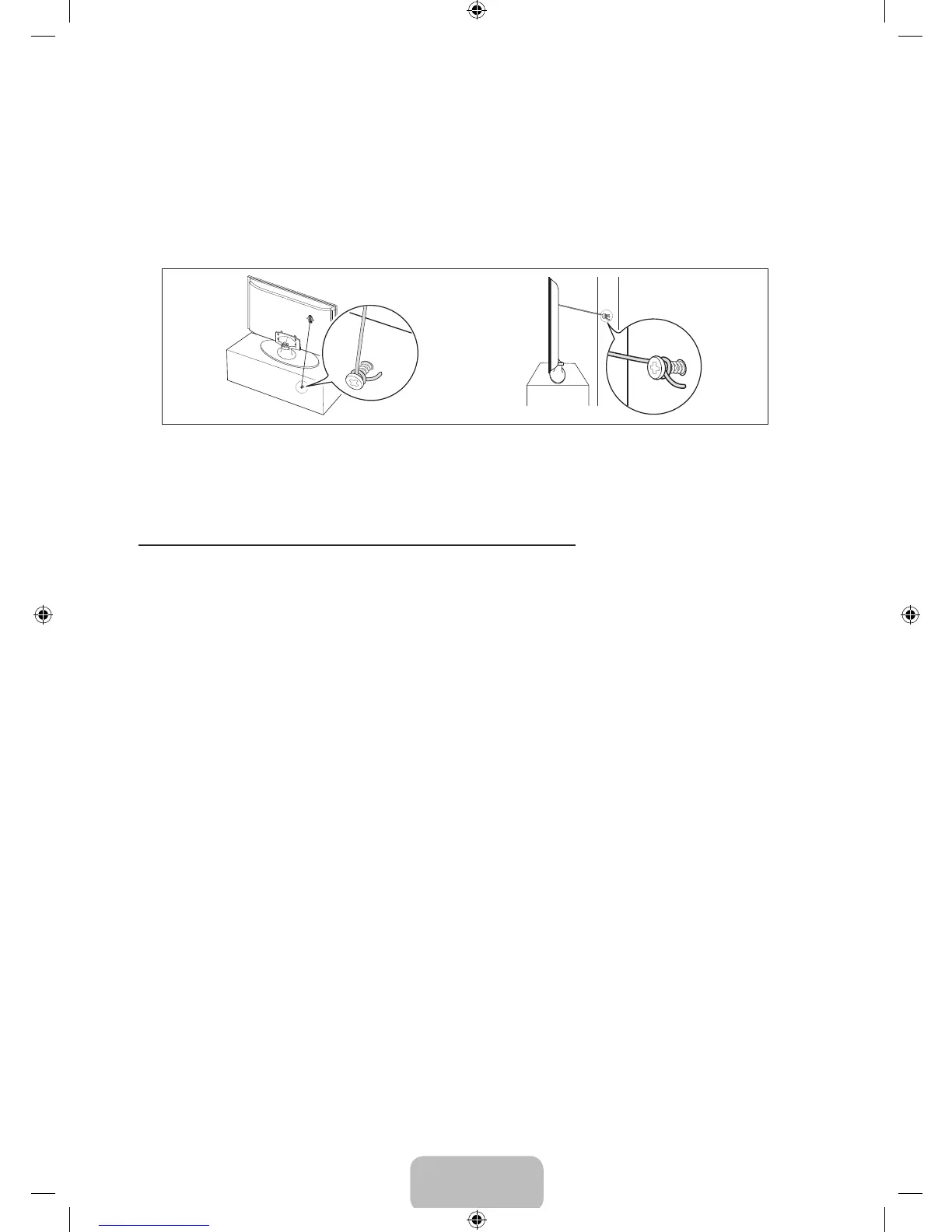 3. Tie the TV-Holder cord to the screw fastened to the wall or cabinet so that the TV is fixed. See the