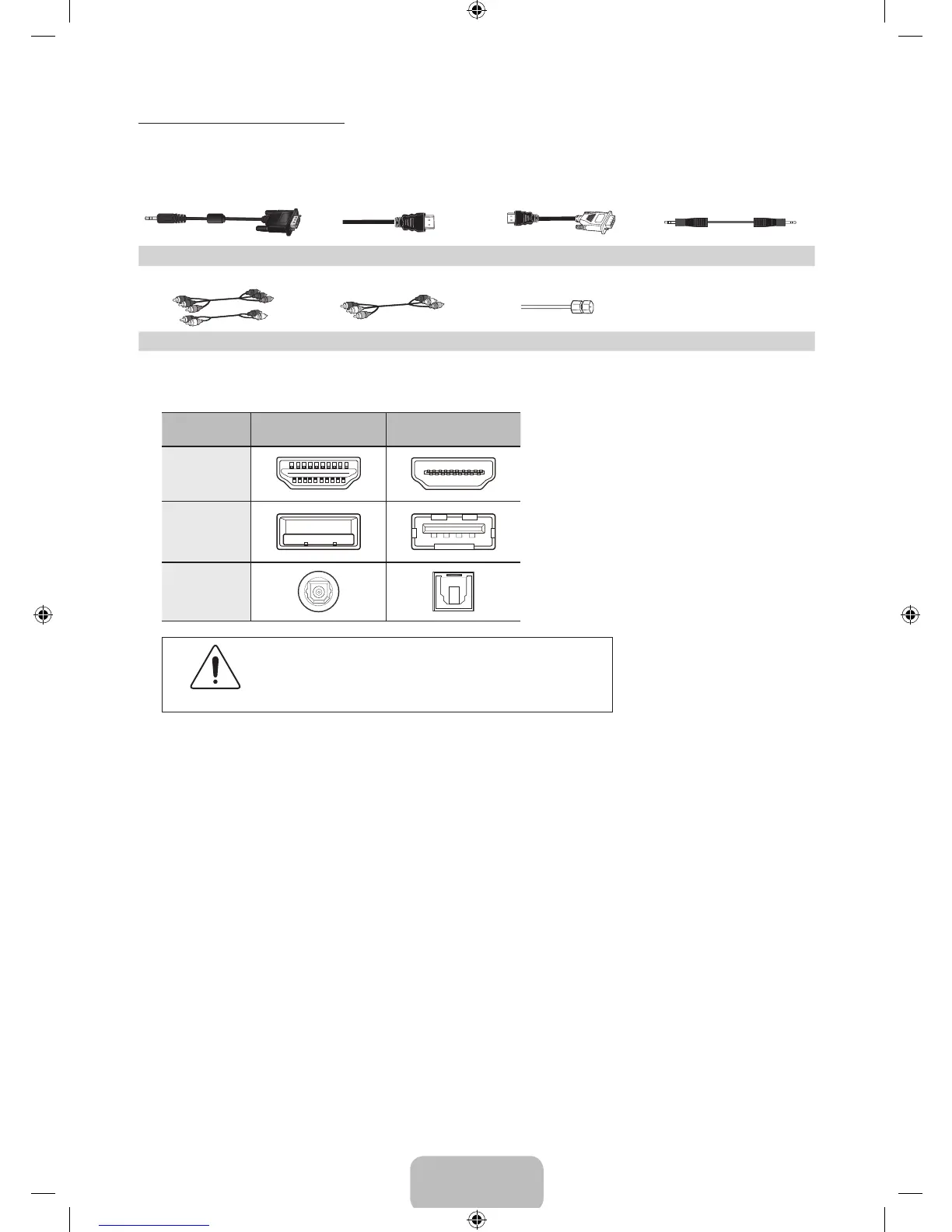 Make sure you have the correct cable before plugging it in. Illustrations of common plugs and jacks
