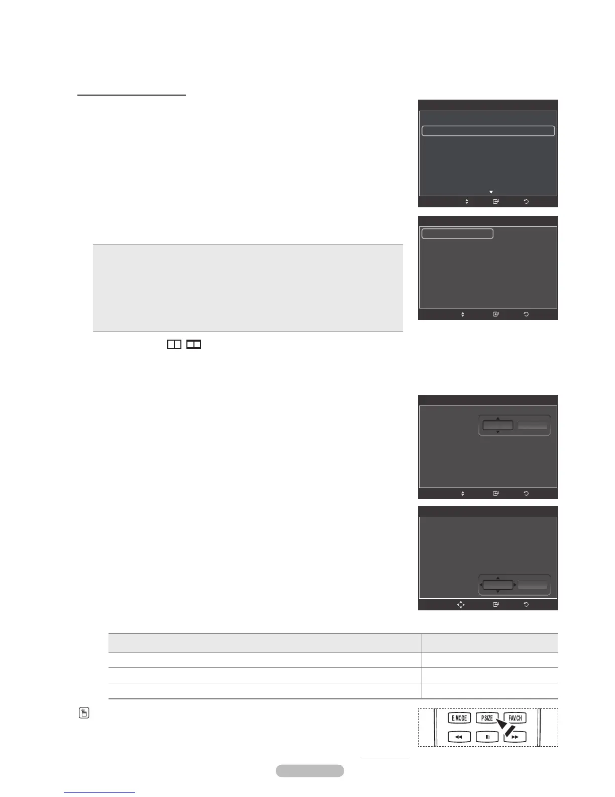Alternately, you can press the P.SIZE button on the remote control repeatedly to change