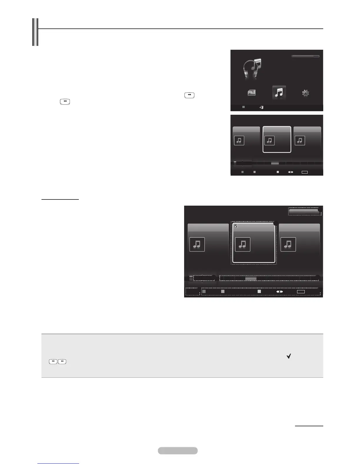 • Yellow(Select) button: Selects music files from the music list. Selected music files are marked with a symbol (