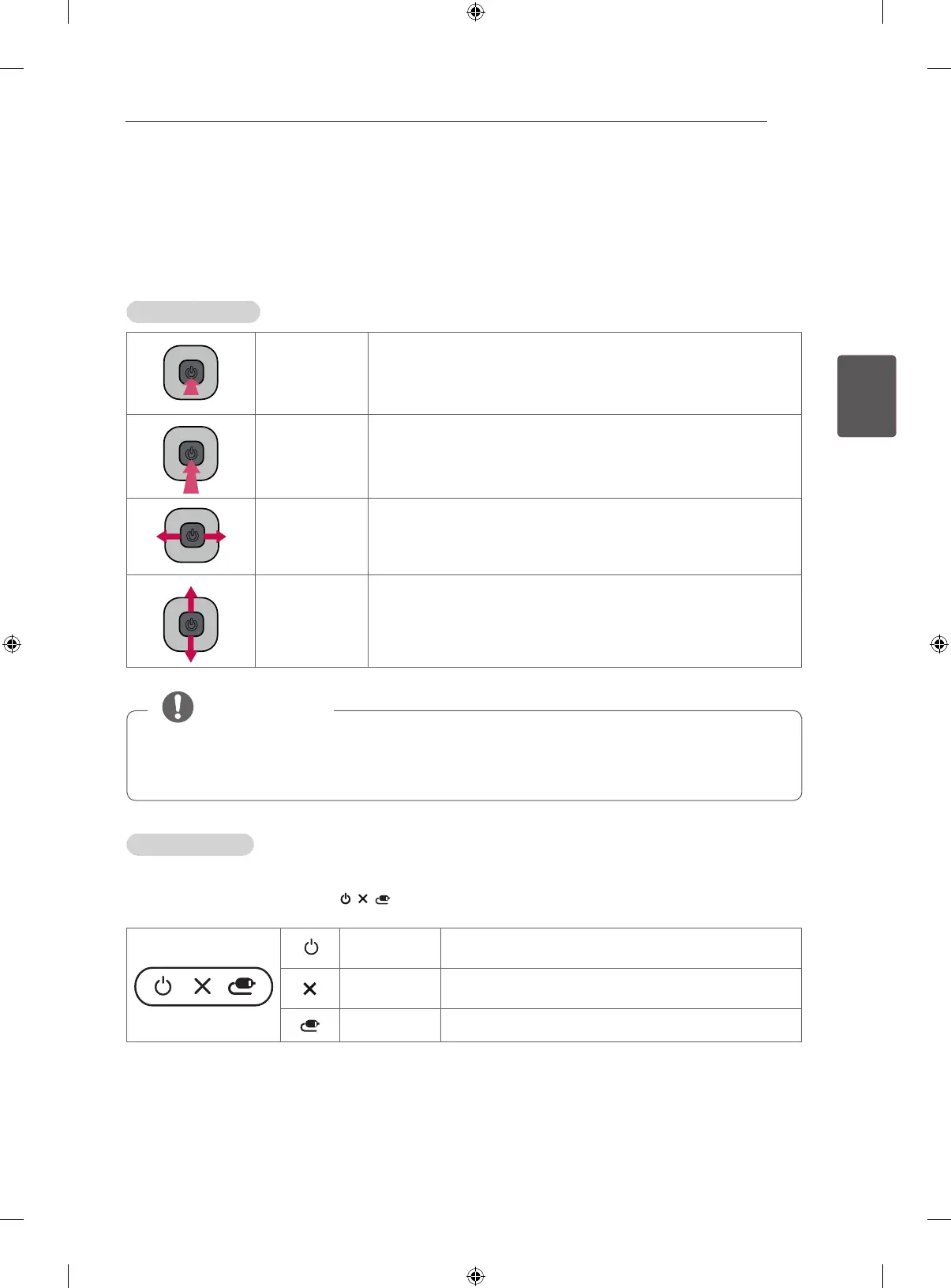 Vous pouvez activer facilement les fonctions de la TV, en appuyant ou en déplaçant le bouton vers le haut,