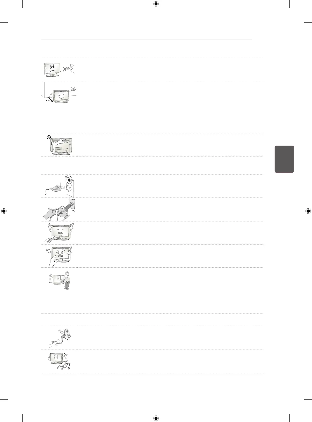 y Dopo aver guardato a lungo il televisore, evitare di toccare le aperture per la