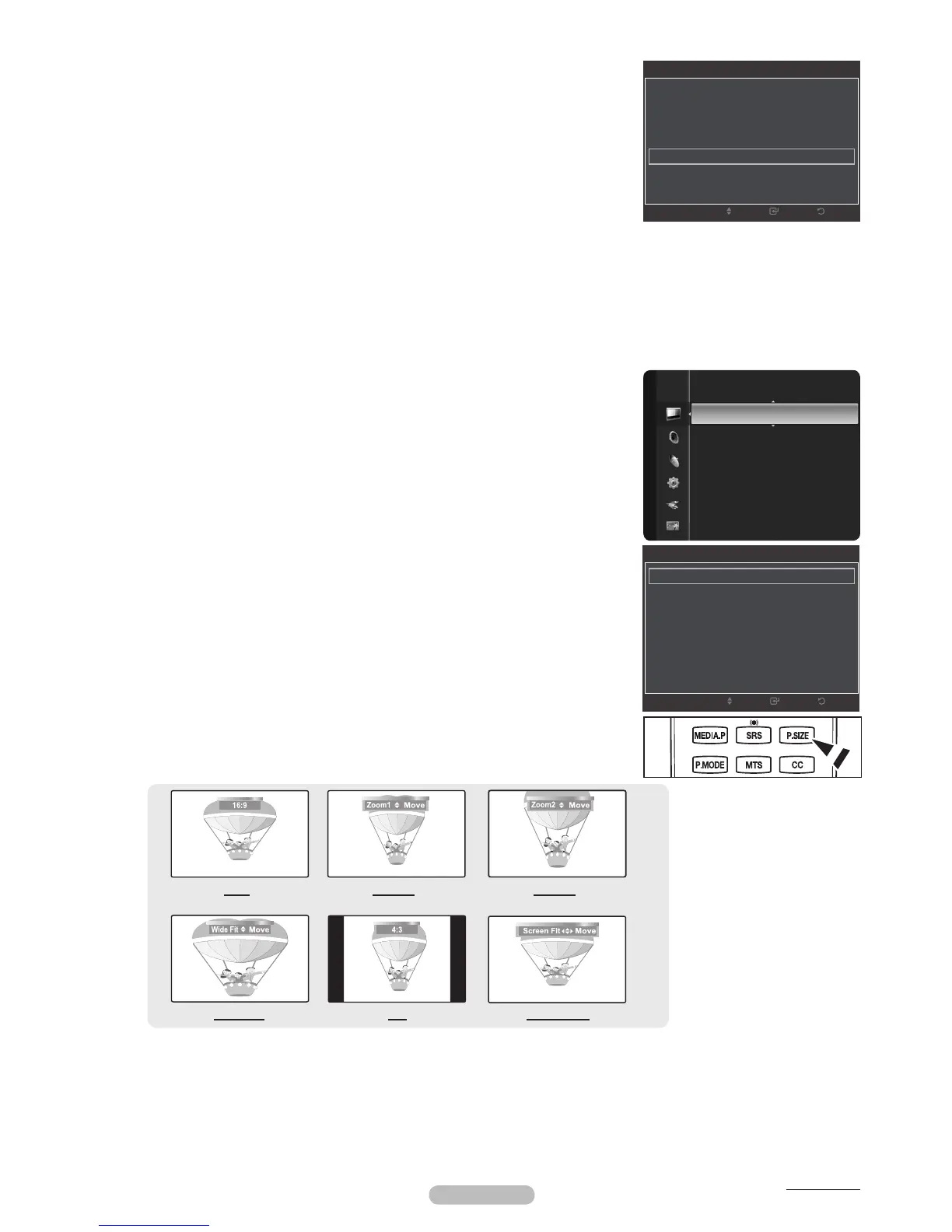 Alternately, you can press the P.SIZE button on the remote control repeatedly to