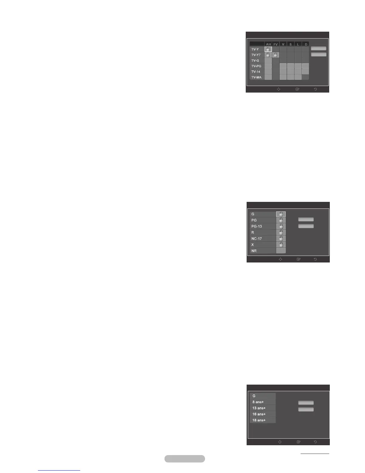 Allow all: Press to unlock all TV ratings. / Block all: Press to lock all TV ratings.