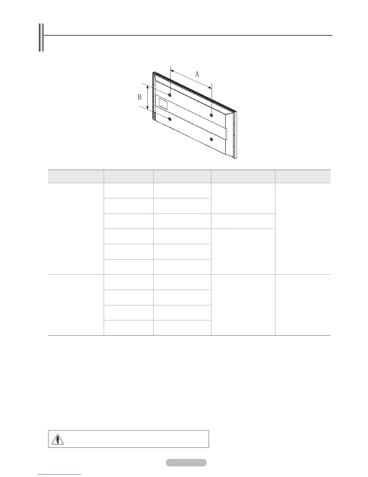 Do not use screws longer than the standard dimension, as they may cause damage to the inside of the TV set.