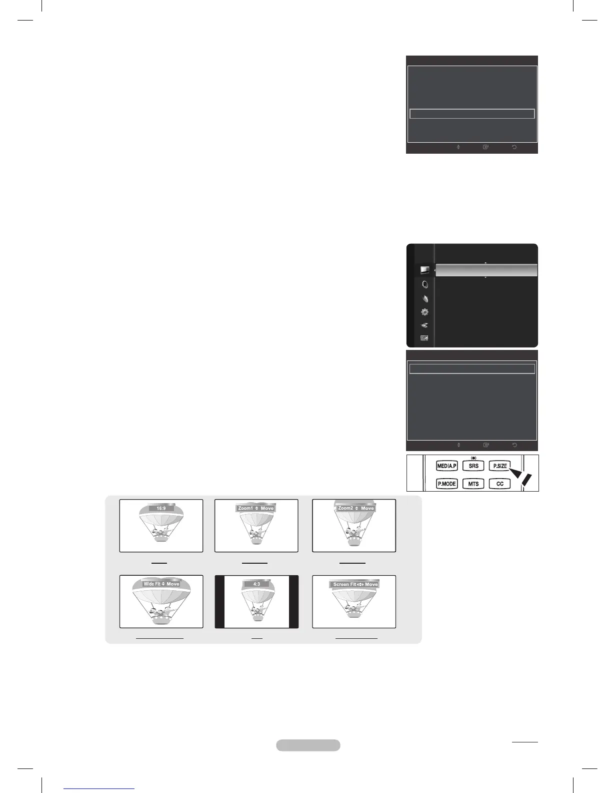 Il est possible d’appuyer à répétition sur la touche P.SIZE de la télécommande pour