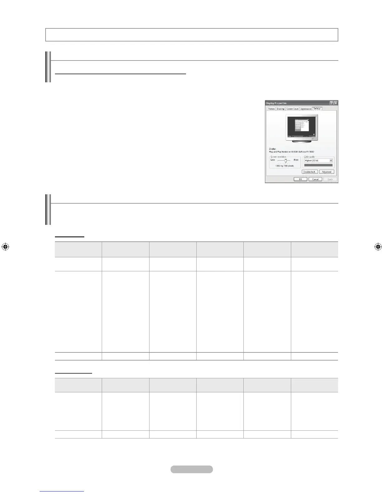 may be no video. For the display modes listed below, the screen image has been optimized during manufacturing.