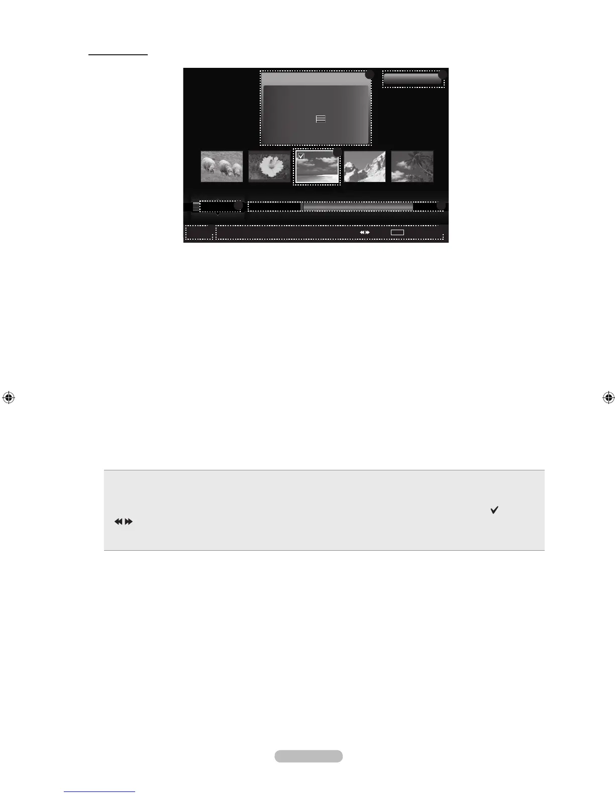 Yellow(Select) button: Selects photos from the photo list. Selected photos are marked with a symbol