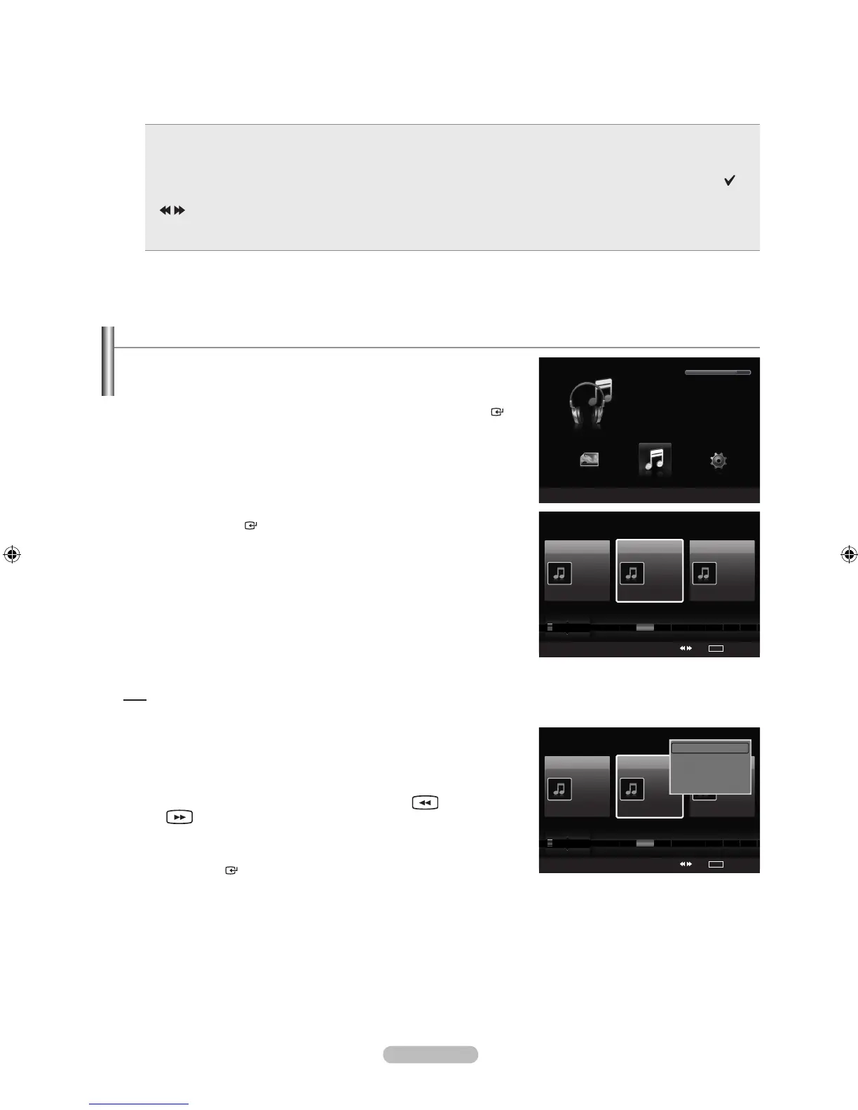 Press the ◄ or ► button to select “Music”, then press the ENTER