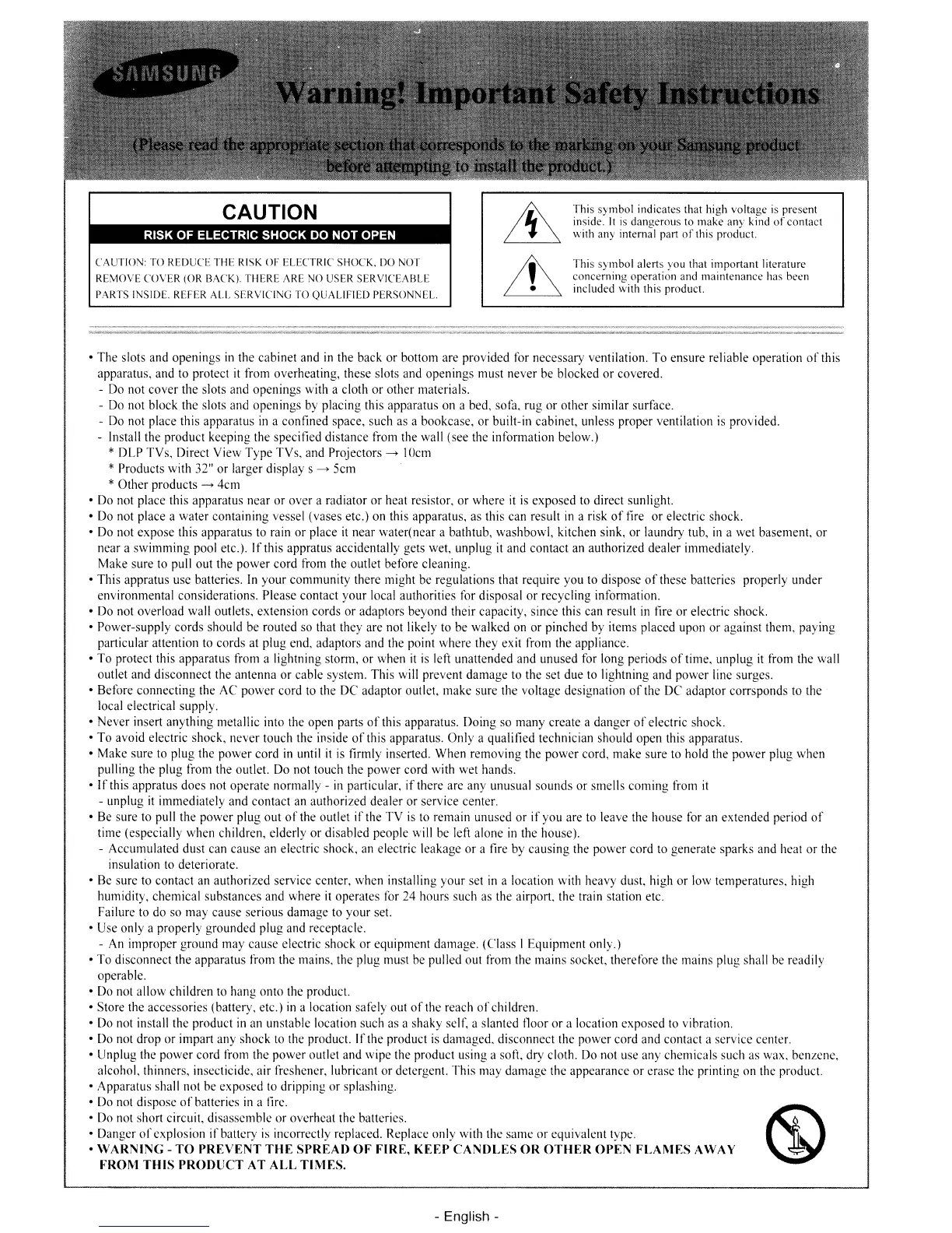 not cover the slots and openings with a cloth or other materials.
