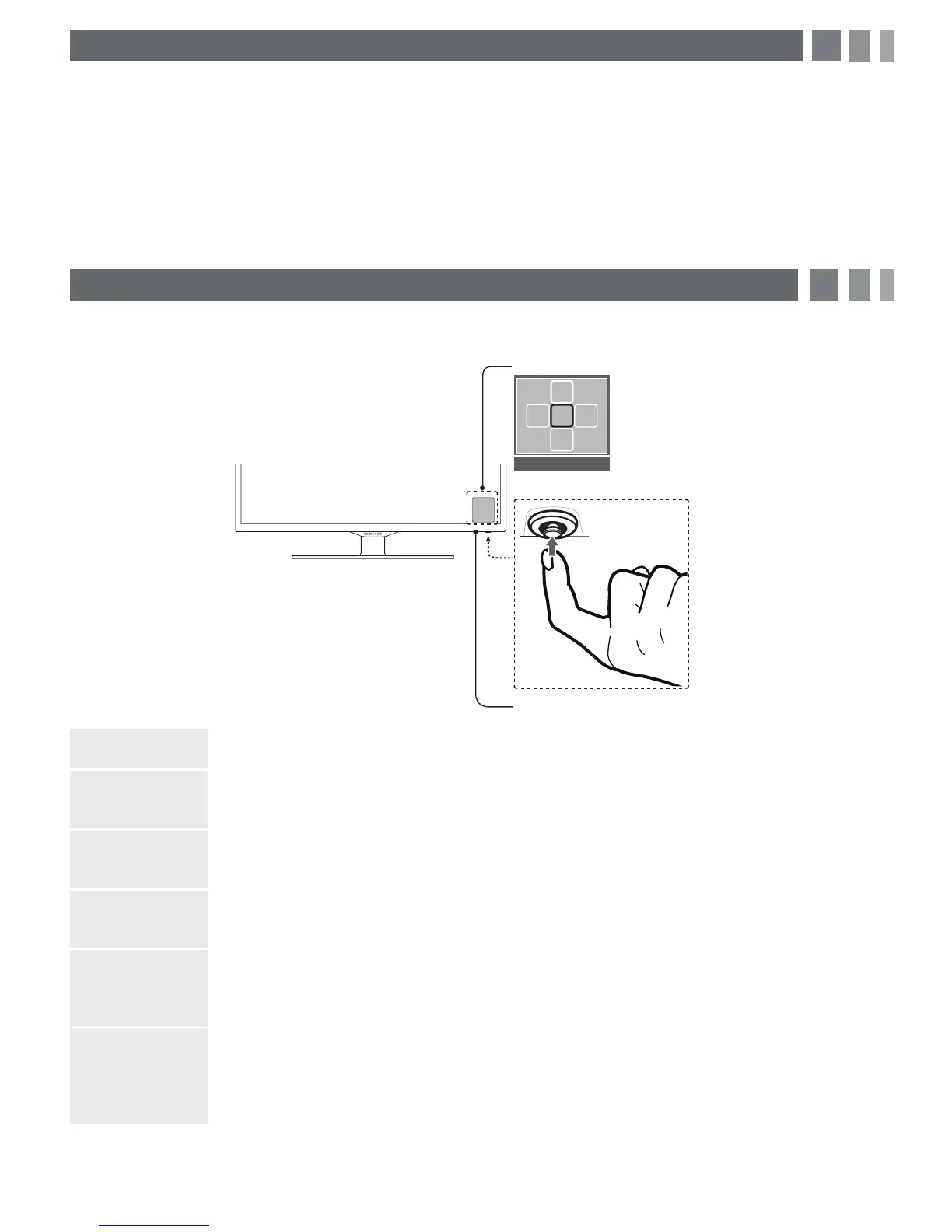The TV's Controller, a small joy stick like button on the bottom right side of the TV, lets you control the TV without the