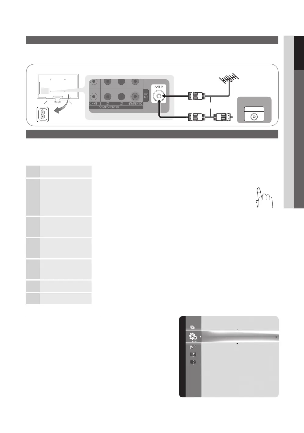 When the TV is initially powered on, a sequence of on-screen prompts will assist in configuring basic settings. Press the