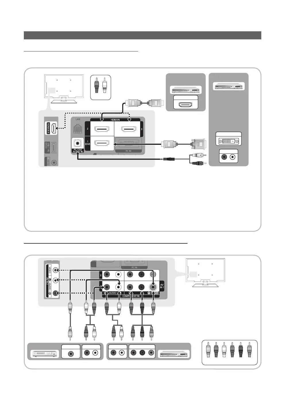 When using an HDMI/DVI cable connection, you must use the HDMI IN 1(DVI) jack for video. A DVD, Blu-ray