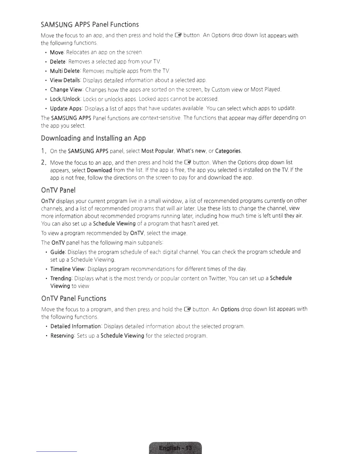 Removes a selected app from your TV.