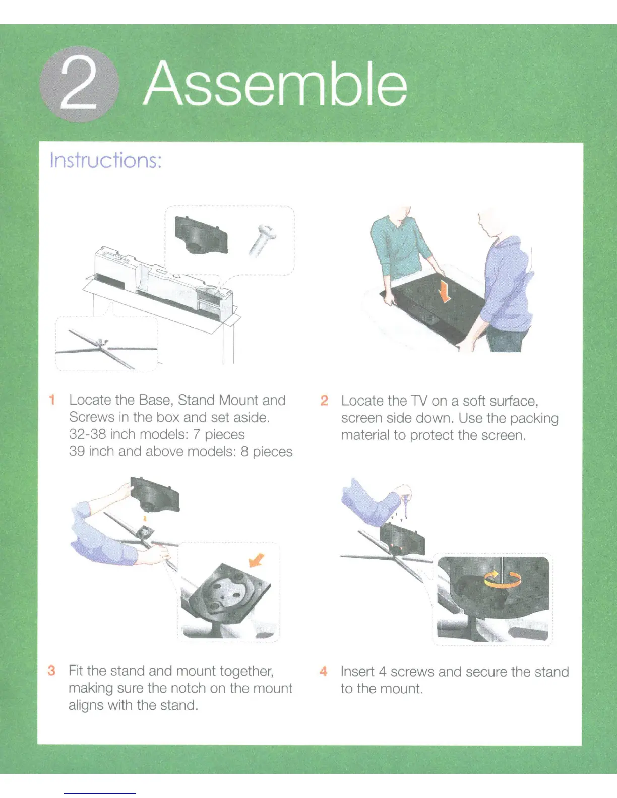 39 inch and above models: 8 pieces