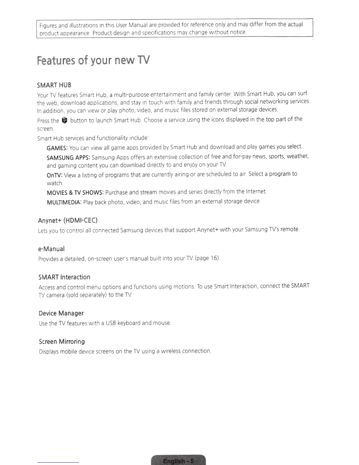 Samsung 6300 - Features of your new TV; SMART HUB Overview; Other Smart Features