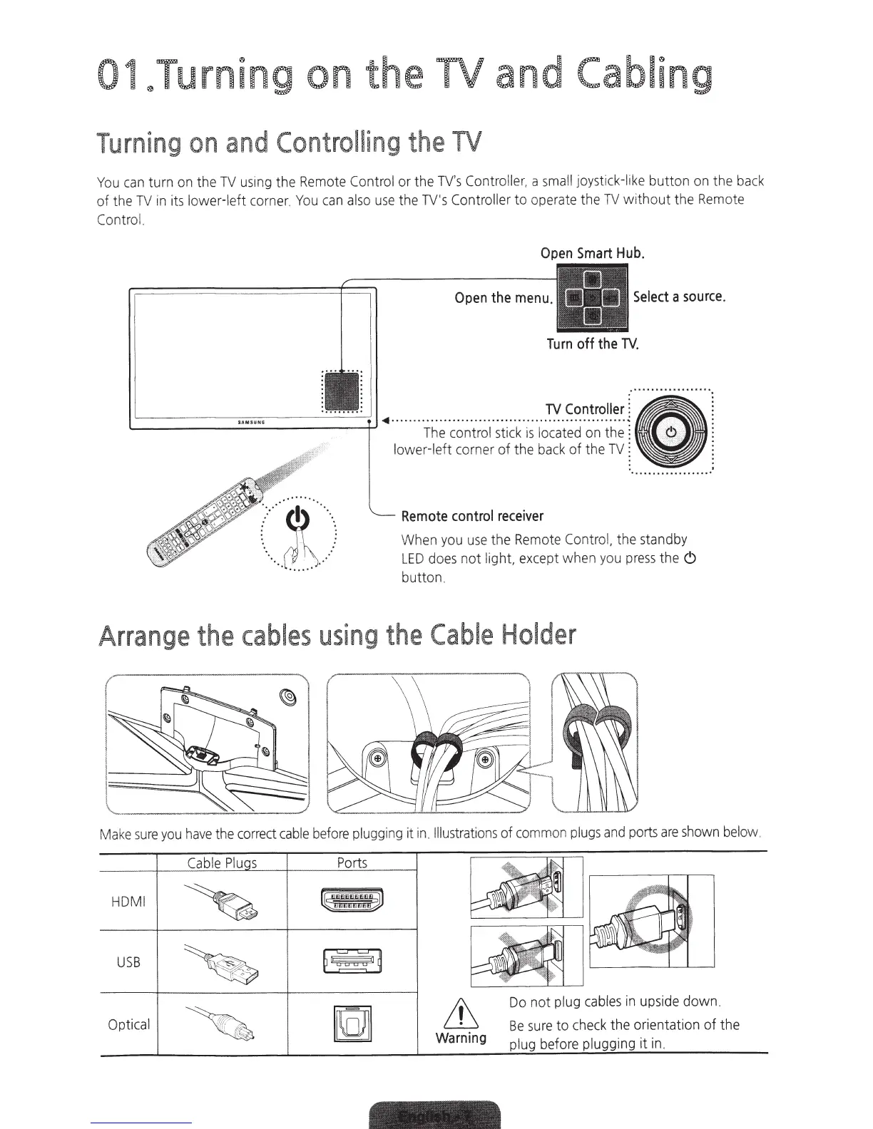Samsung 6300 - Turning on the TV and Cabling; Powering On and Controlling TV