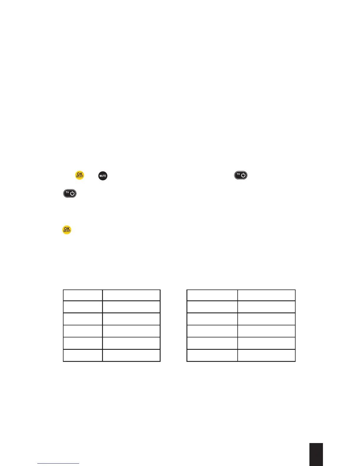 4. Point the remote control at the TV. Refer to the table below and enter the number
