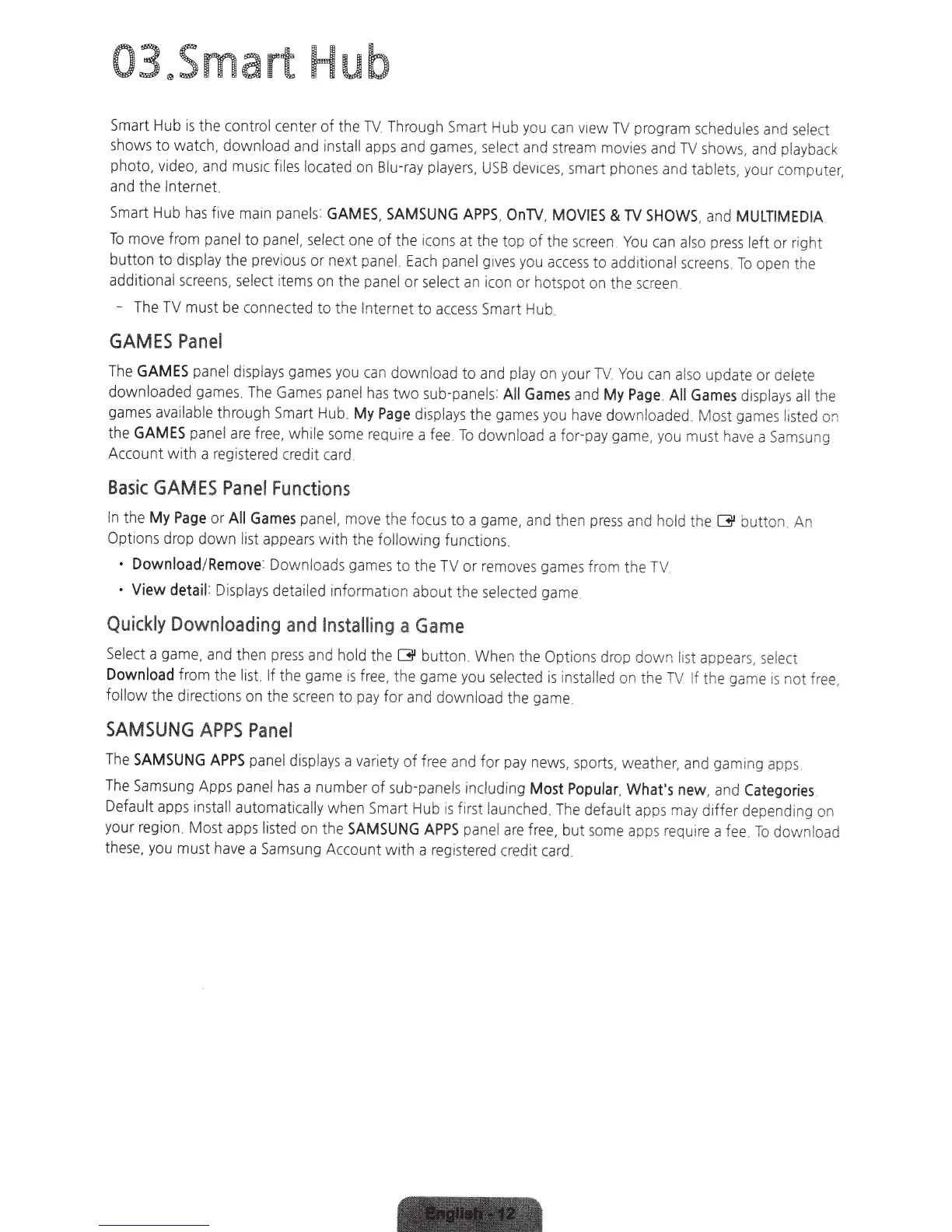Samsung 6350 - Smart Hub Features; GAMES Panel Overview; SAMSUNG APPS Panel Overview