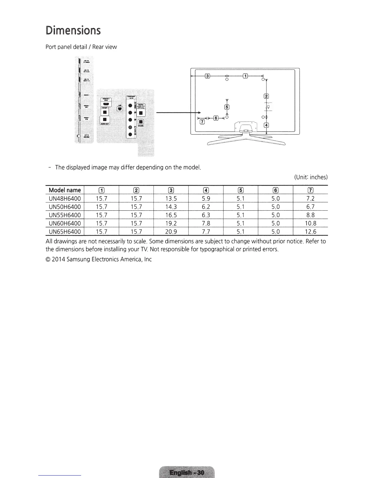 Samsung 6400 - Dimensions
