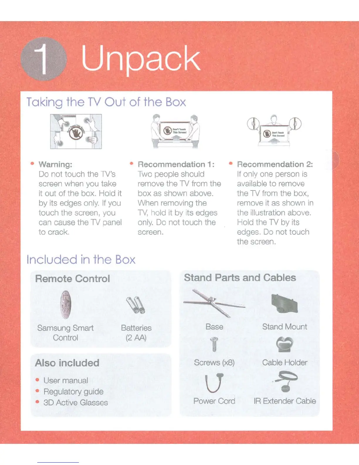 Samsung 6400 - 1 Unpack; Taking the TV Out of the Box; Included in the Box