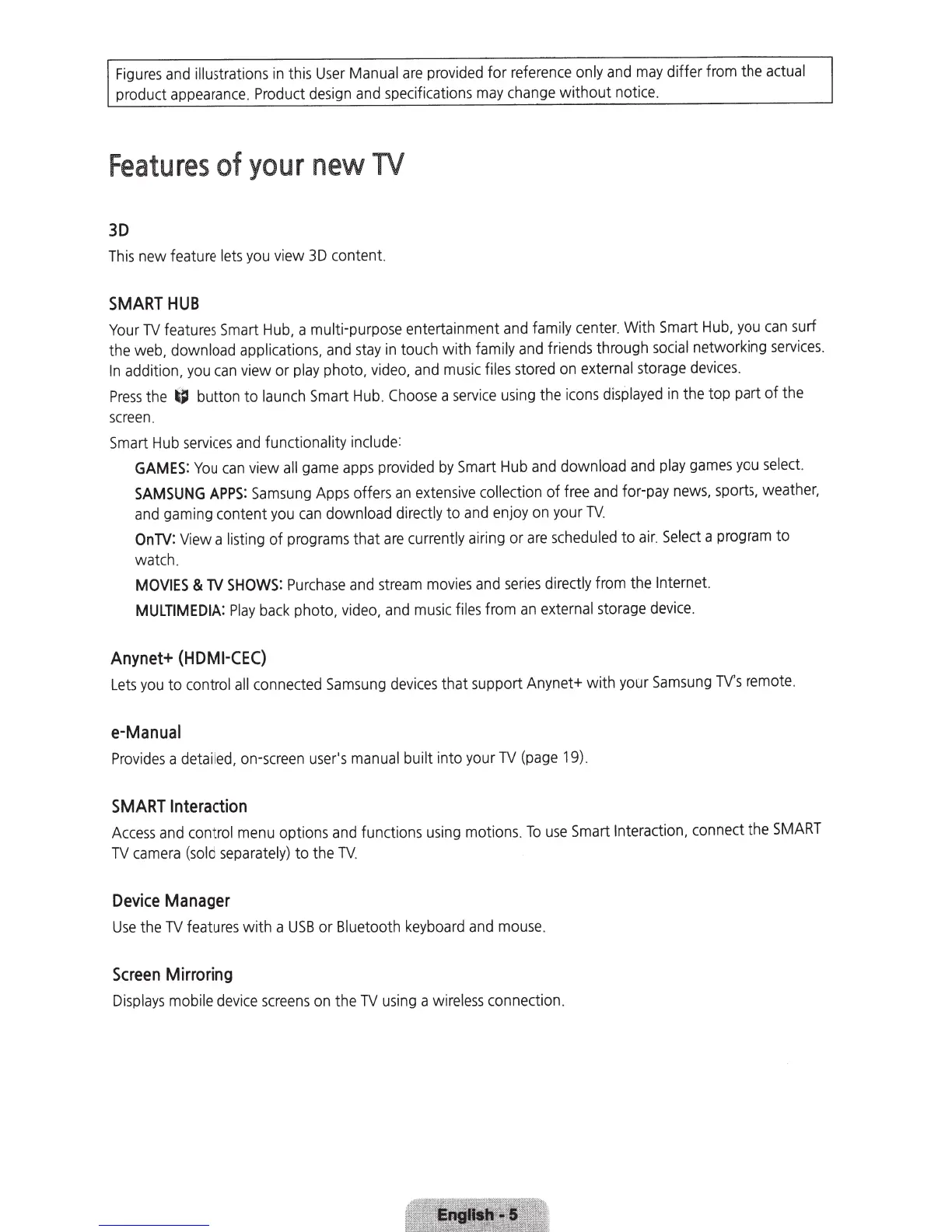 Samsung 6400 - Features of your new TV; 3 D; SMART HUB; Anynet+ (HDMI-CEC)