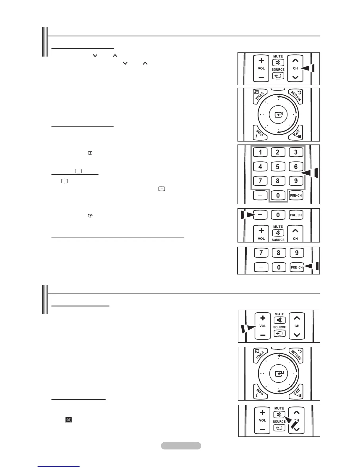 For quick channel change, press the number buttons, then press the