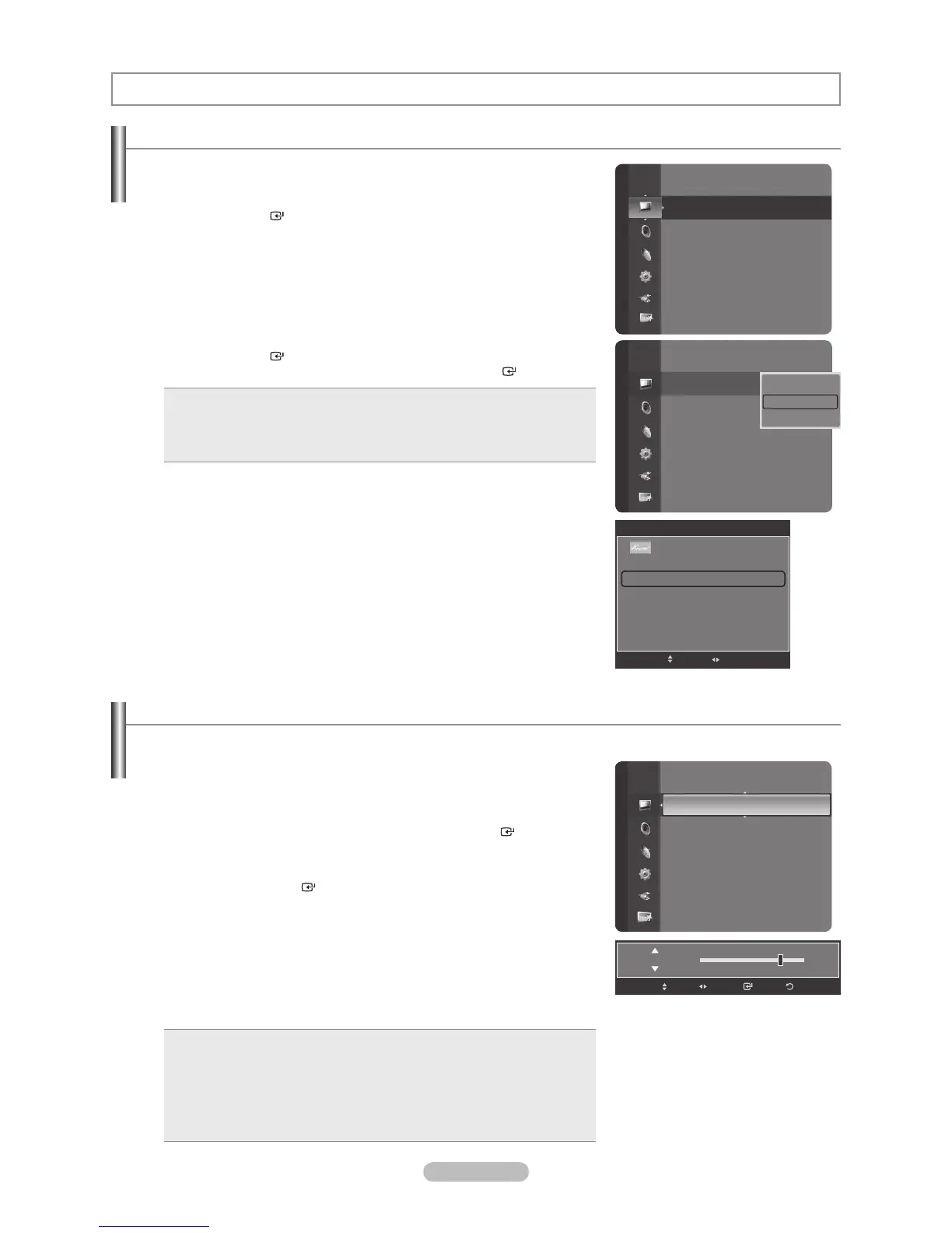 “Sharpness”, “Color” or “Tint(G/R)”, then press the ENTER