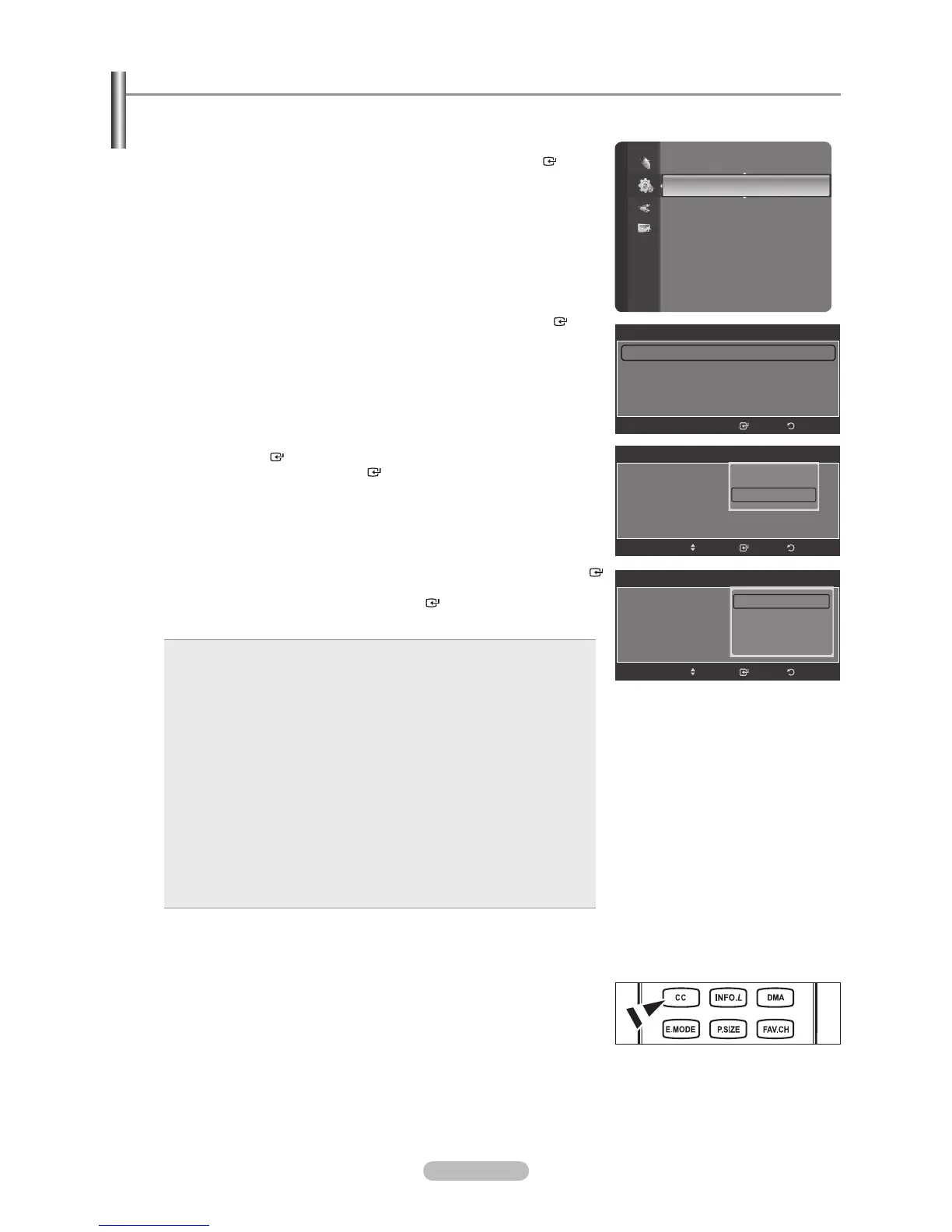 4. Press the or button to select “Caption Mode”, then press the ENTER