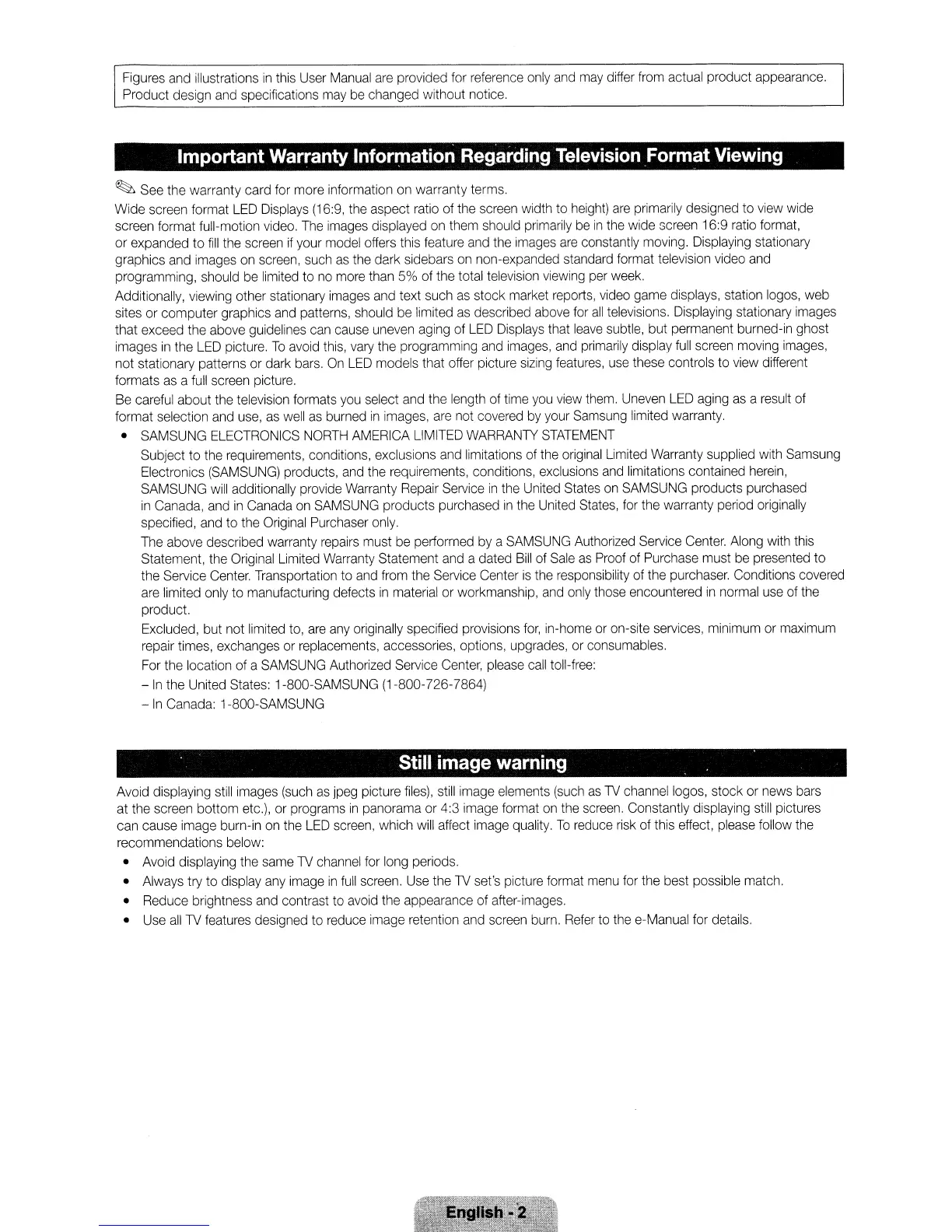 Important Warranty Information Regarding Television Format Viewing