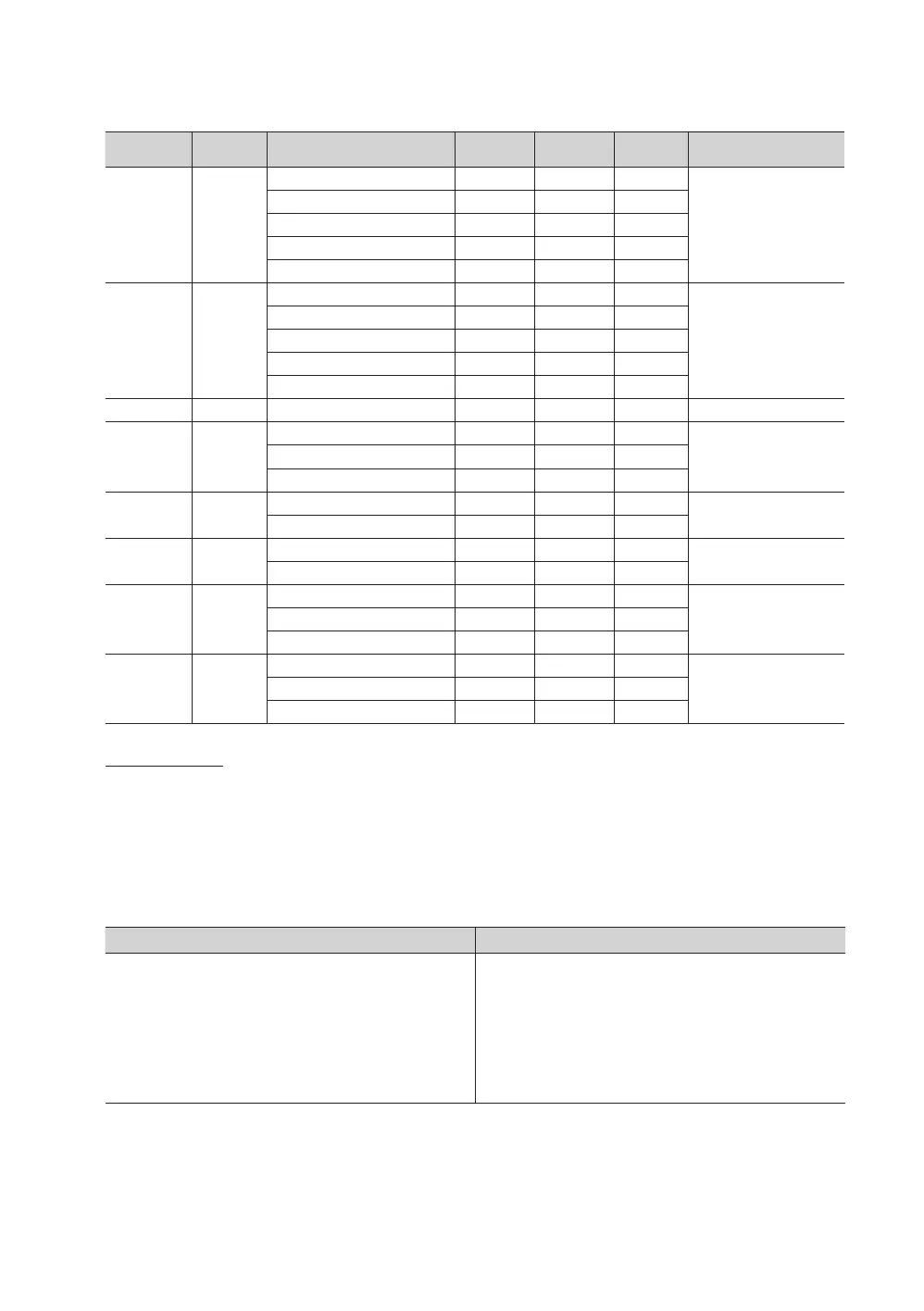 listed in the table above.