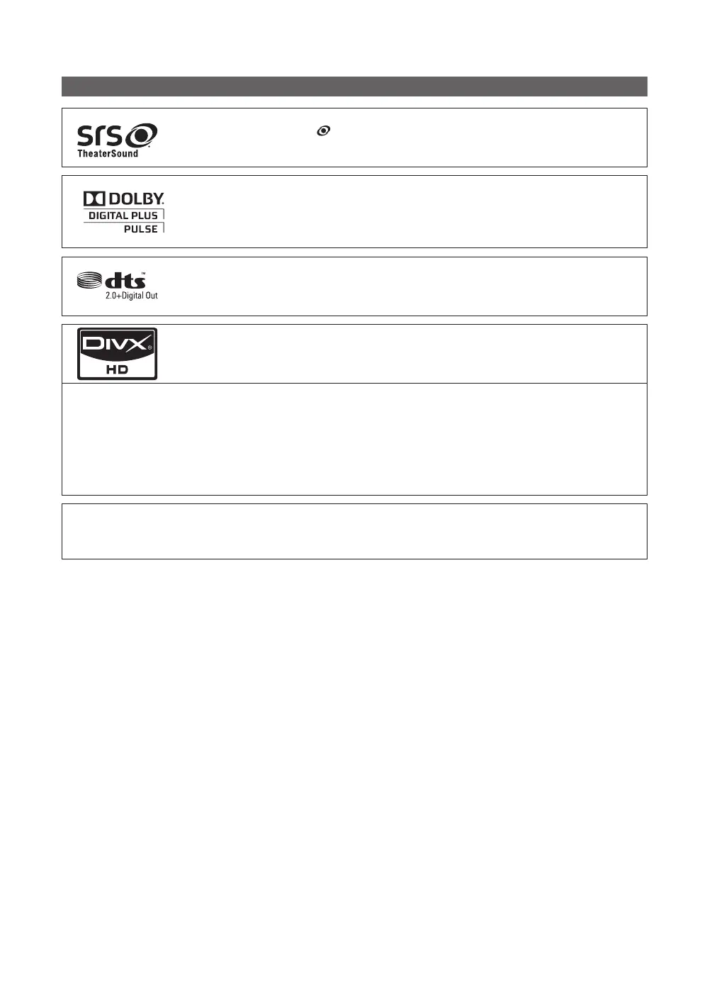 TheaterSound, SRS and the symbol are trademarks of SRS Labs, Inc.