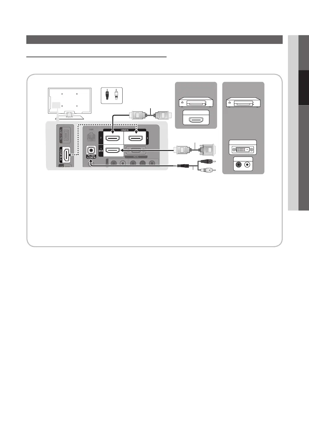 When using an HDMI/DVI cable connection, you must use the HDMI IN 1(DVI) jack for video. A DVD, Blu-ray