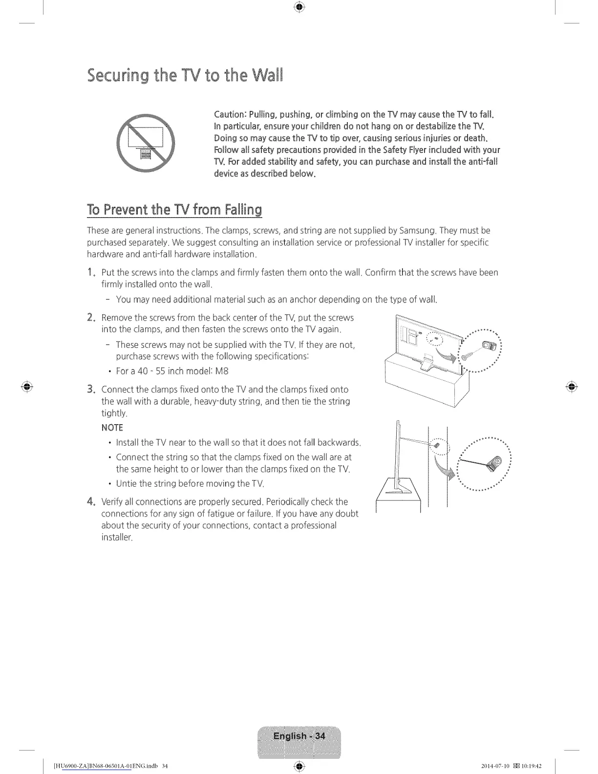 These are general instructions_ ]he clamps, screws, and string are not supplied by Samsung_]hey must be