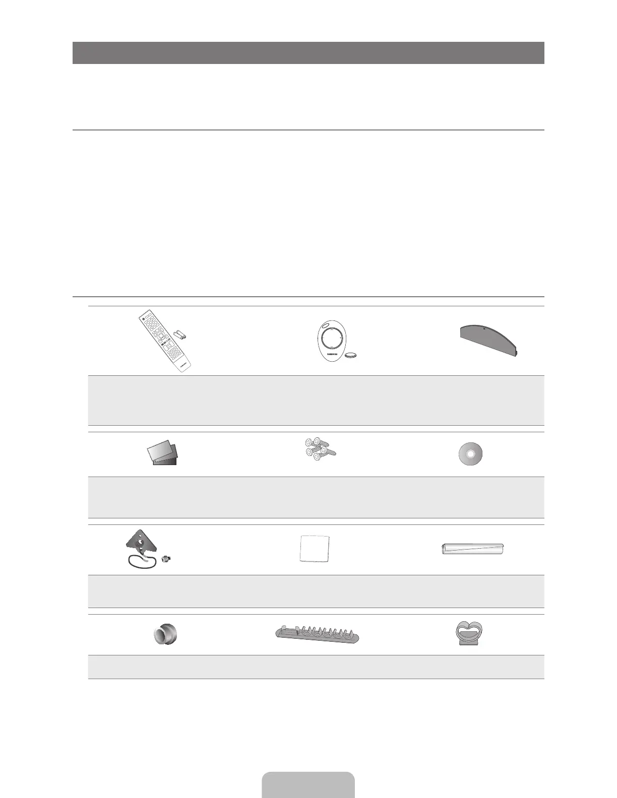 Please make sure the following items are included with your LED TV. If any items are missing, contact your dealer.