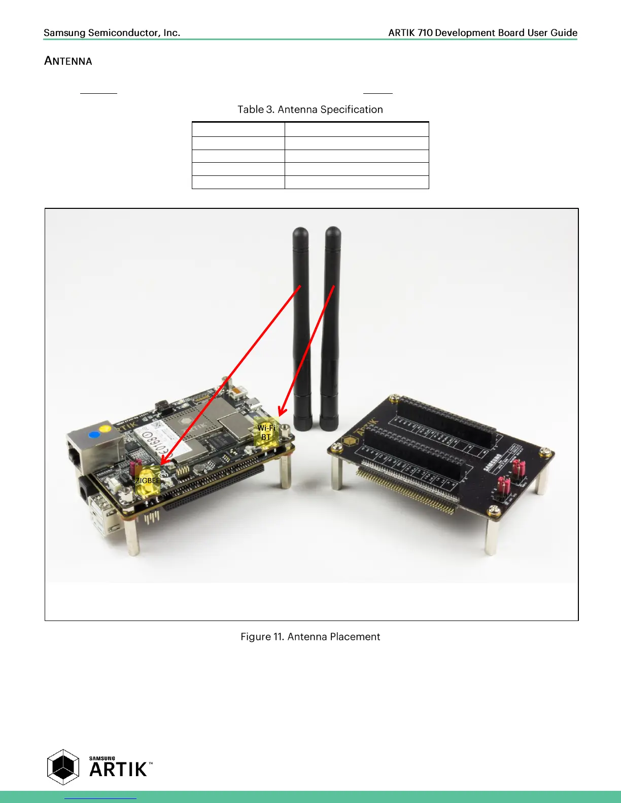 When using Wi-Fi/Bluetooth (same antenna) or ZigBee the included antenna’s need to be attached to the Interposer Board,