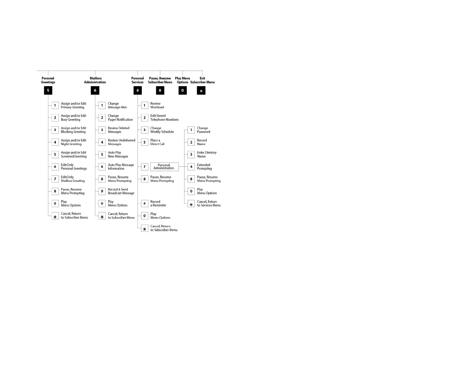 hear the Subscriber Services Menu with the following options: