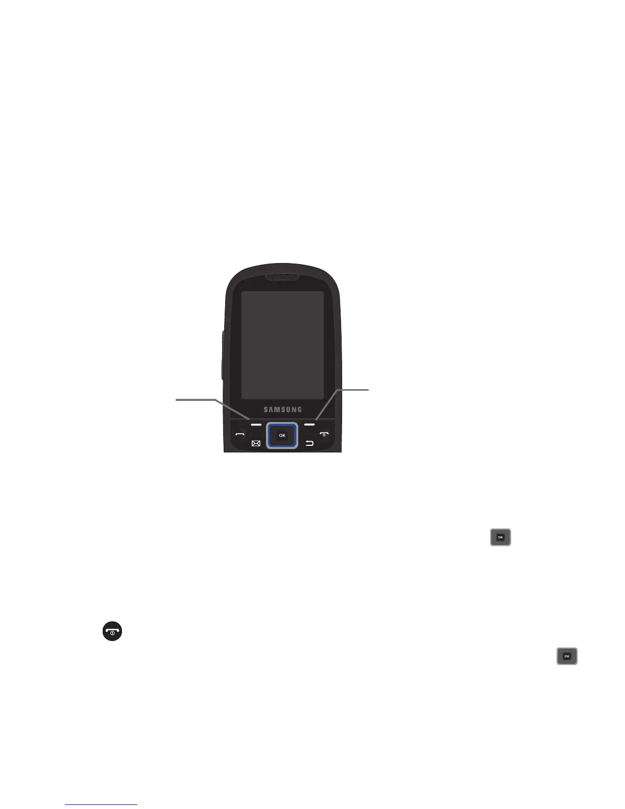 2. Select the displayed function or the highlighted option by pressing the Select soft key or .