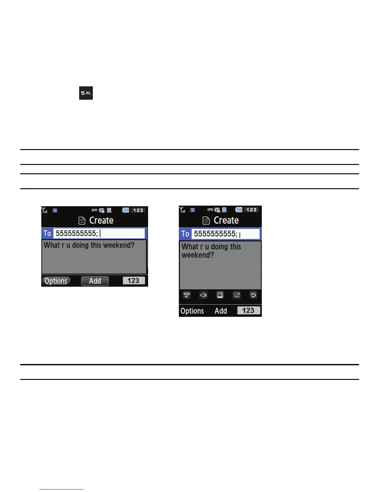 When you are in a field where you can enter characters, the text input mode indicator displays at the bottom right of the screen.