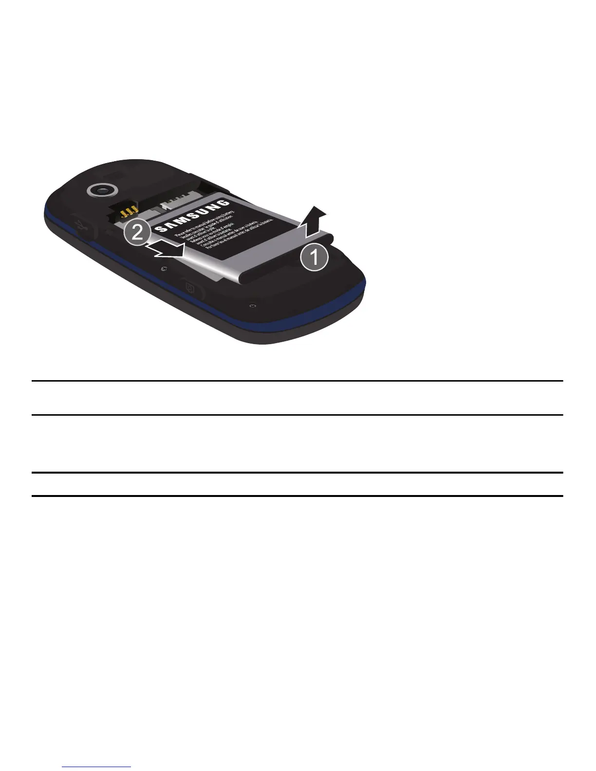 Lift up (1) and remove (2) the battery.