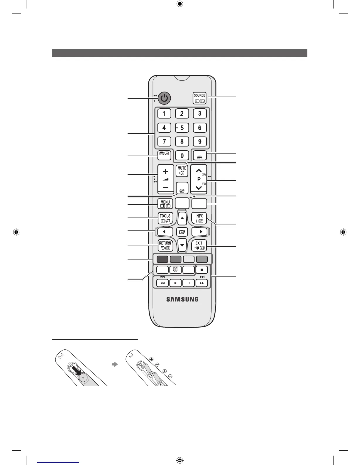 ✎ This remote control has Braille points on the Power, Channel, and Volume buttons and can be used by visually