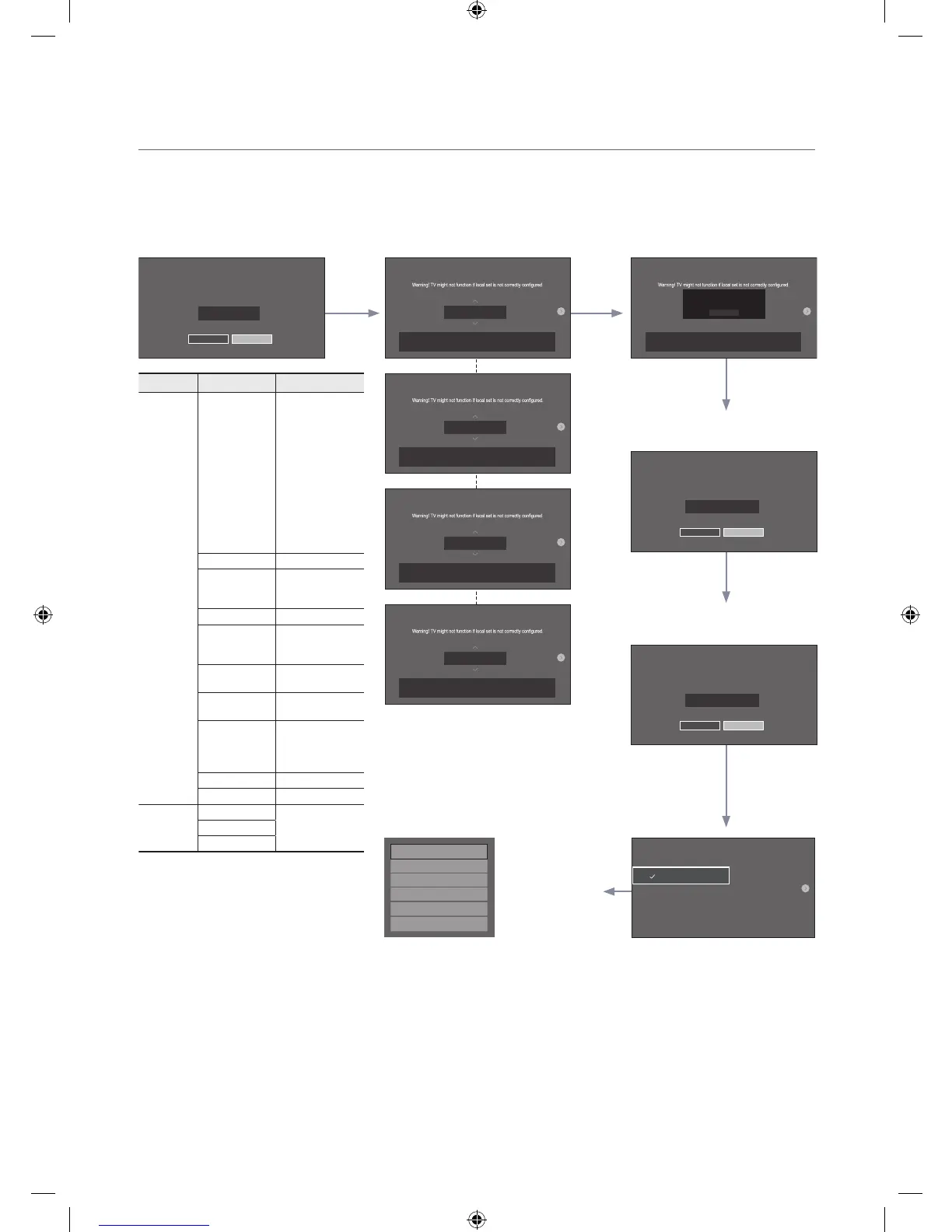 • TV might not function, if Local Set is not correctly configured. Select correct Local Set with country list provided.